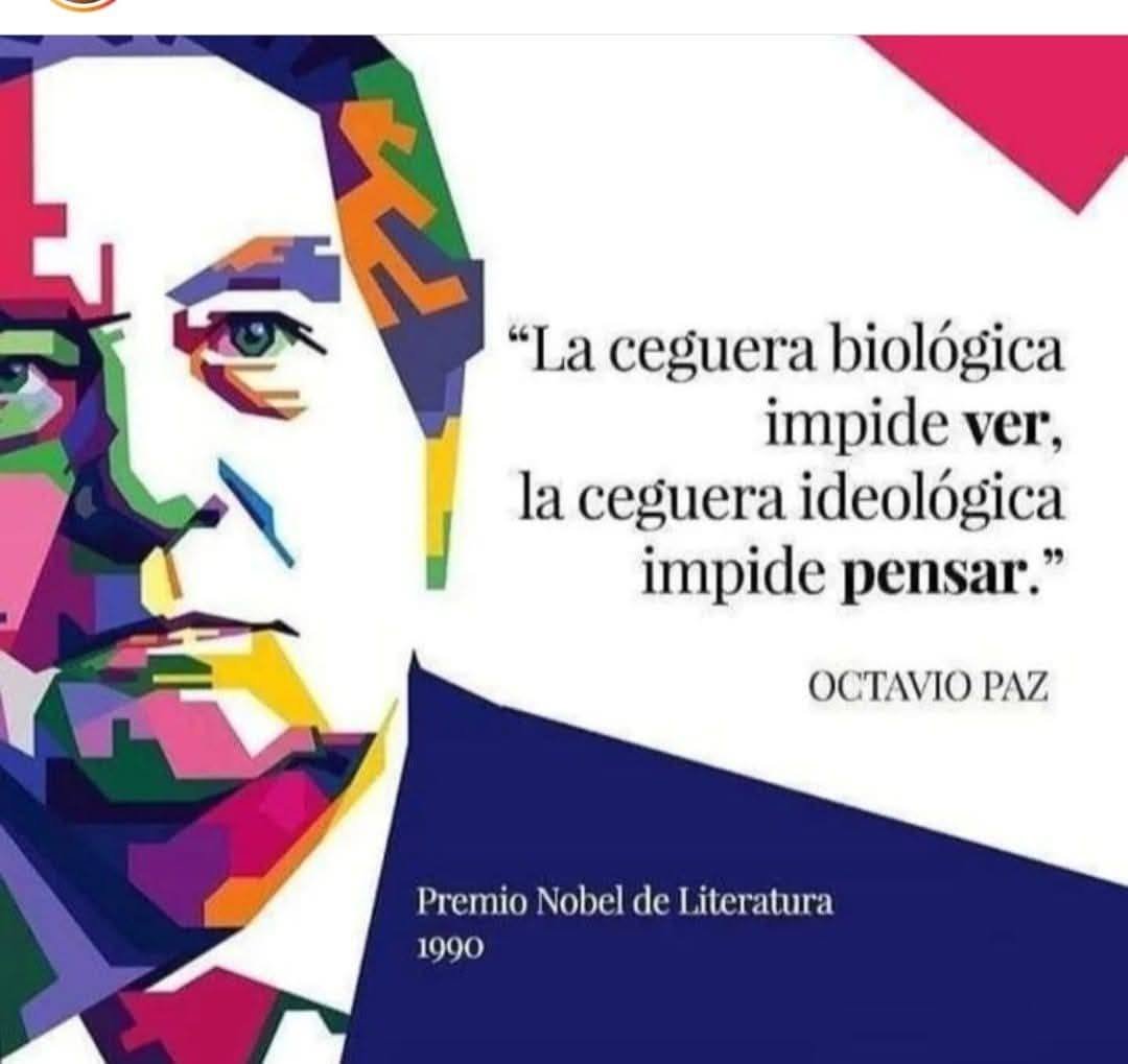 PD. La frase «La ceguera biológica impide ver, la ceguera ideológica impide pensar» sí se atribuye a Octavio Paz, aunque no pertenece a una de sus obras literarias más conocidas (como El laberinto de la soledad o El ogro filantrópico), sino que ha sido citada en distintos artículos y discursos donde se analiza su pensamiento político y filosófico. La idea concuerda con su crítica constante al dogmatismo ideológico y su defensa de la libertad de pensamiento.